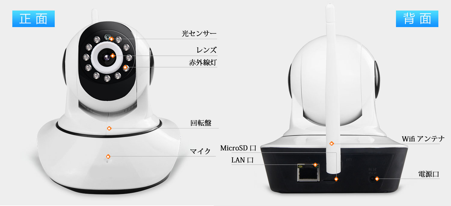防犯カメラ 携帯で遠隔監視 WiFi無線接続 IP WEB カメラ 赤外線暗視防犯セキュリティ ●インターネットで有線LAN接続、或いは無線wifi接続だけで、遠く離れた居場所でスマホやPCから監視・録画可能な防犯カメラです 離れた家族安全の確認、留守番防犯カメラとして使える 【MicroSDはこちらから】